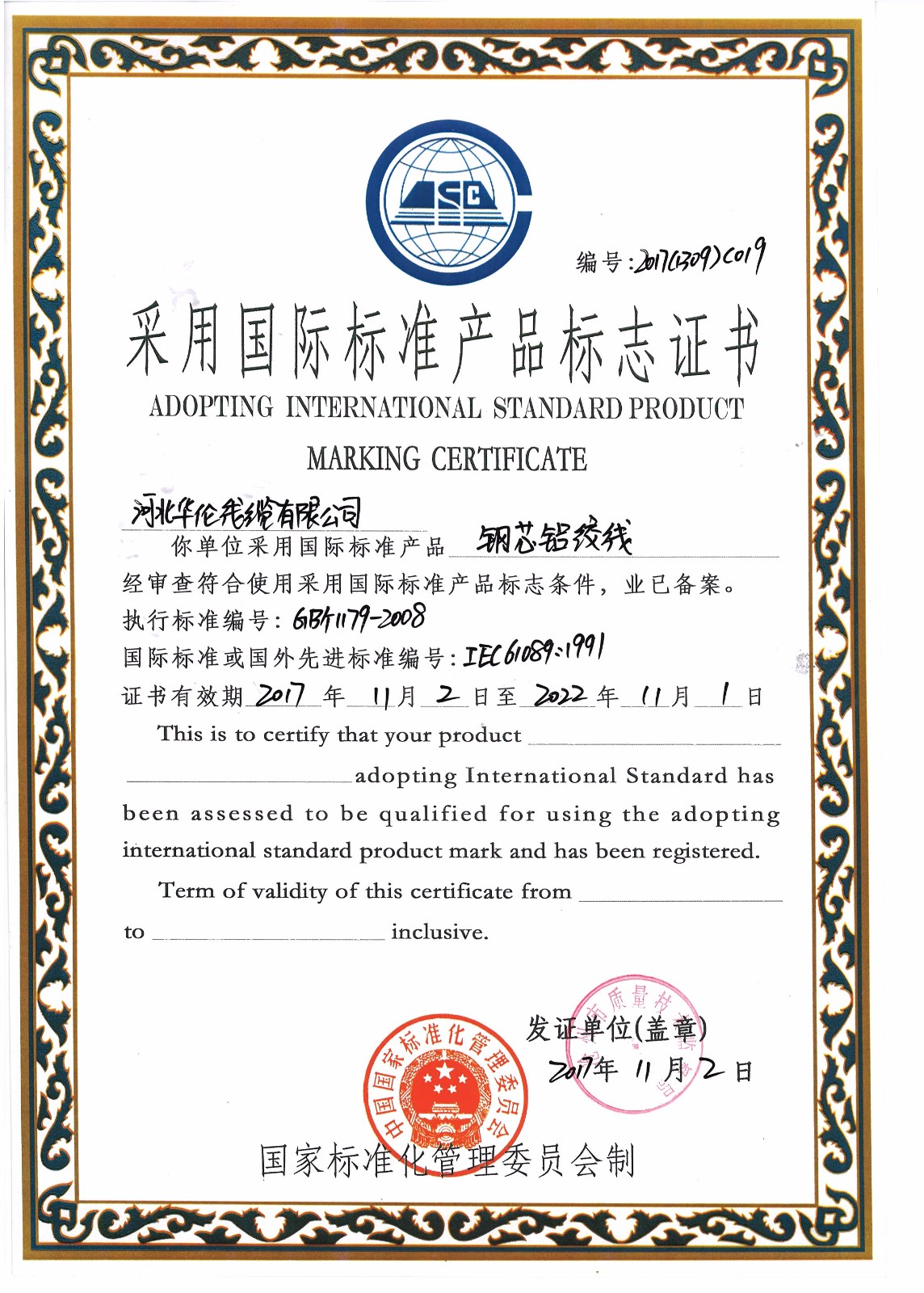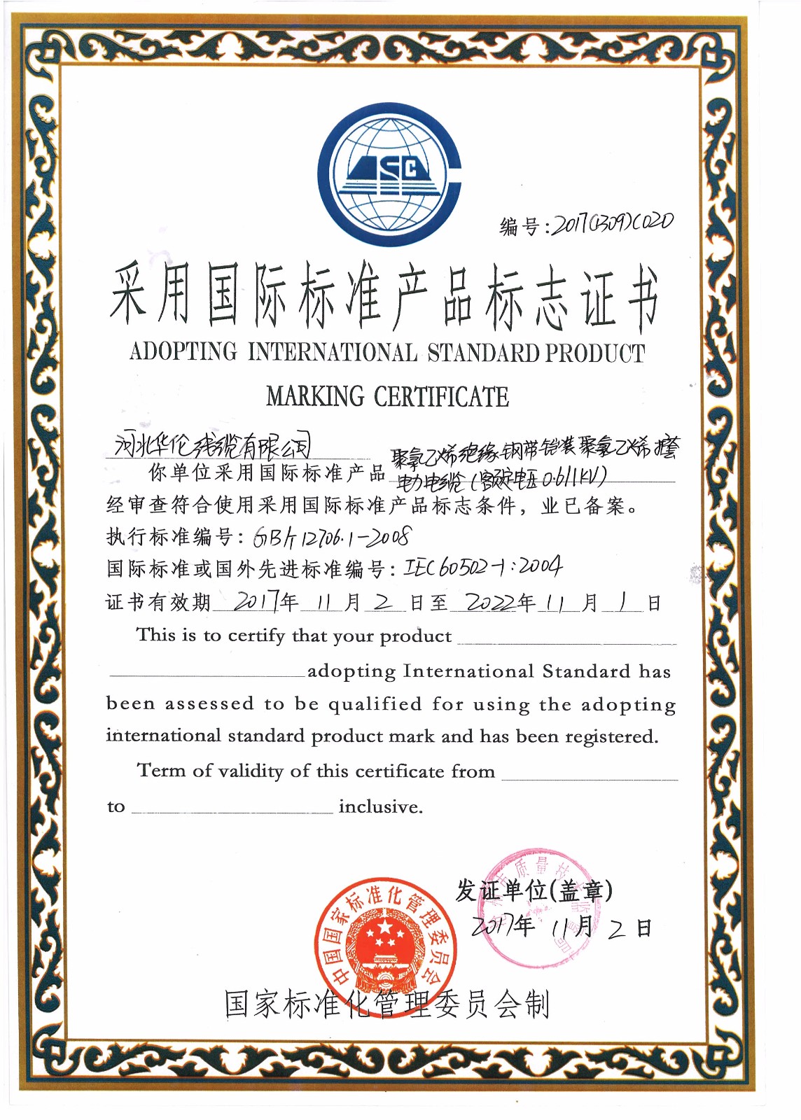 采用國際標(biāo)準(zhǔn)產(chǎn)品標(biāo)志證書