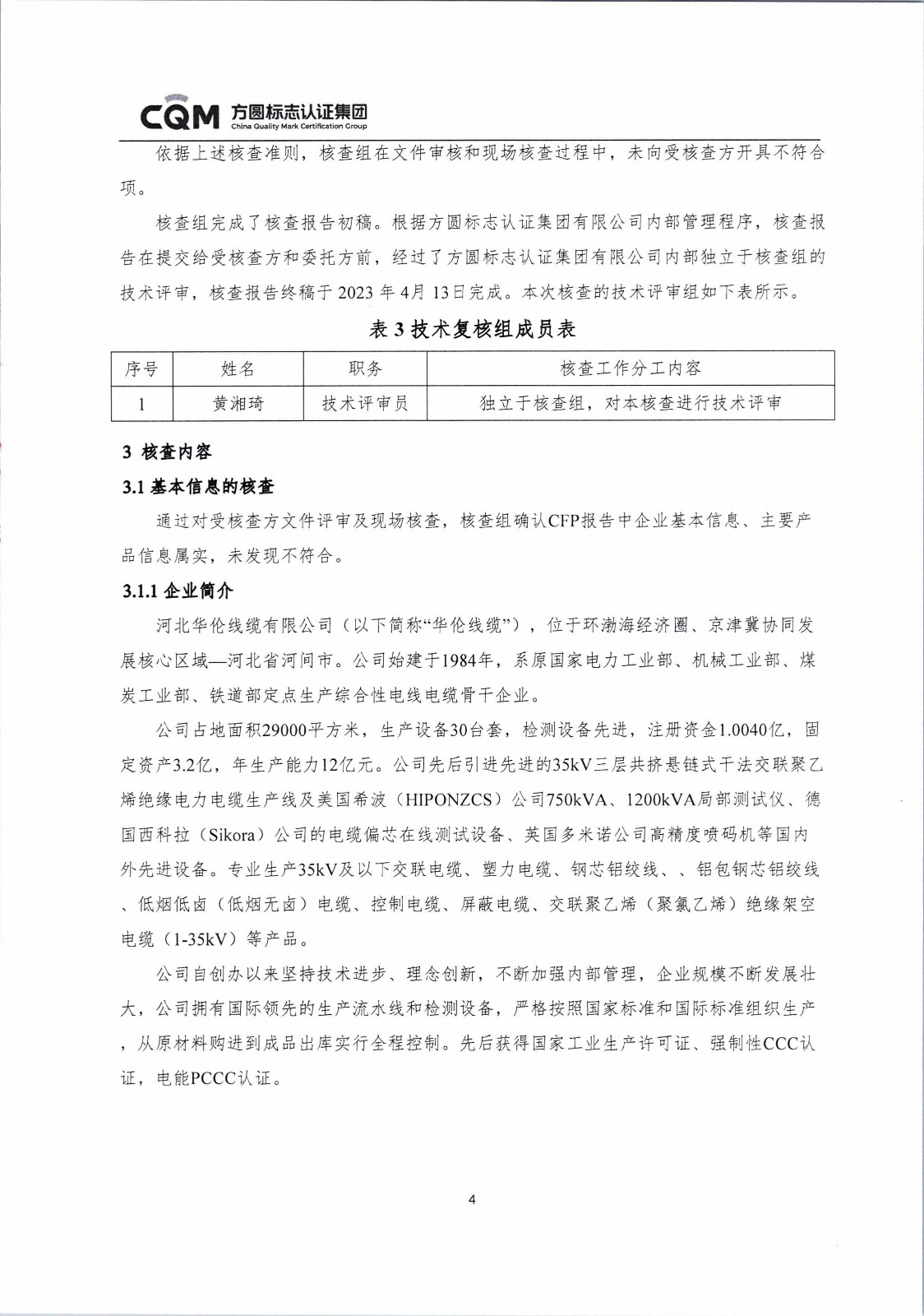 河北華倫線纜有限公司1km電線電纜碳足跡報告(蓋章)