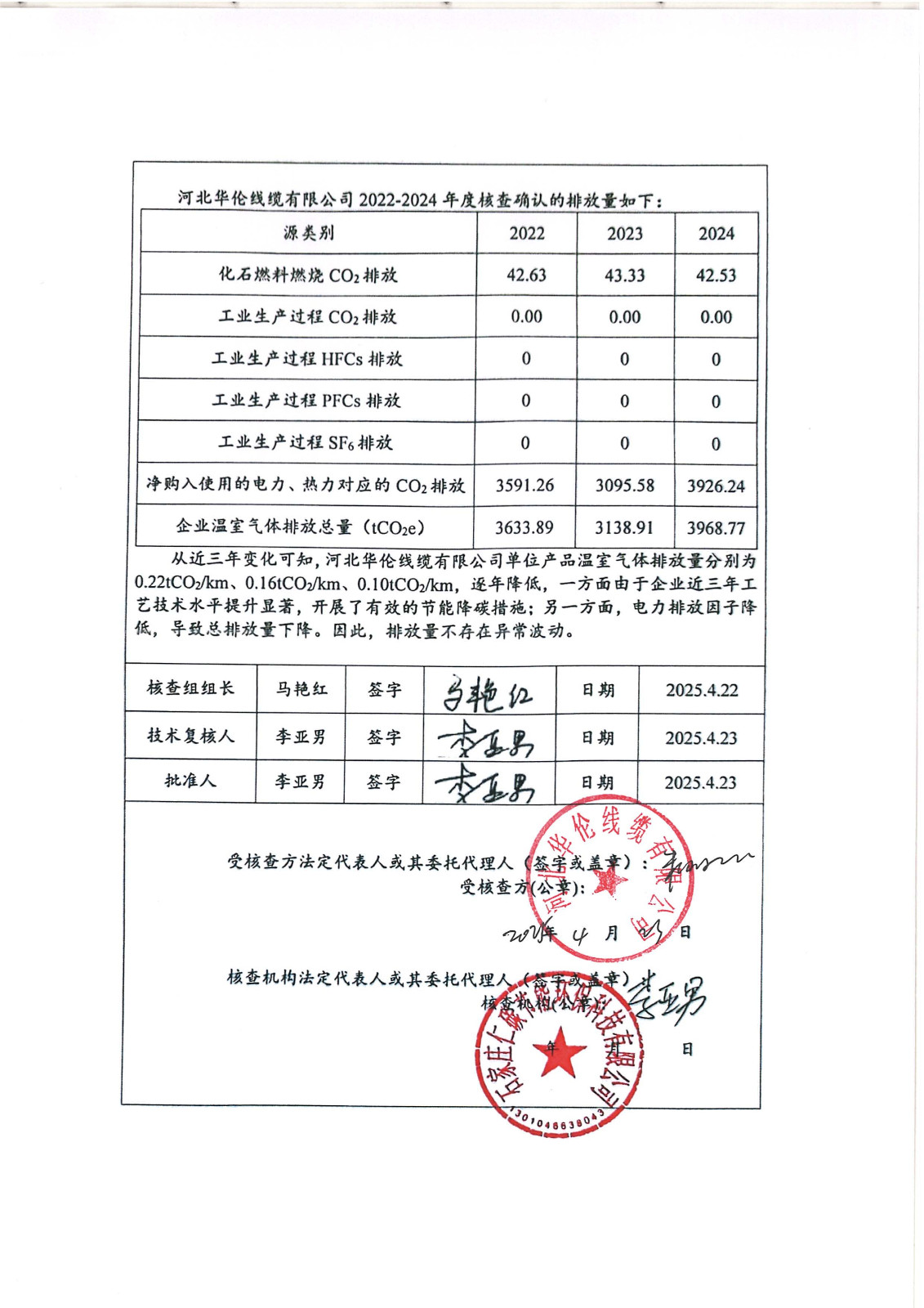 河北華倫線纜有限公司2022-2024年溫室氣體排放核查第三方聲明